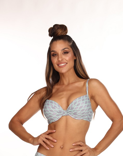 Бюстгальтер с формованными чашечками на каркасах и съёмным up, c регулируемыми бретелями, на спинке застёгивается на прочную металлическую застёжку.