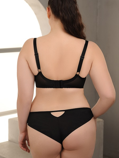 В коллекции представлены трусики-бразилиано и трусики с широким боком. Обе модели украшены кружевными вставками, гармонирующими с бюстгальтером.