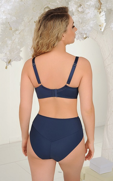 В коллекции представлены трусики-бразилиано и трусики с высокой линией талии. Обе модели оформлены кружевными вставками, гармонирующими с бюстгальтером.
